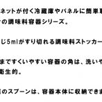 マグネットが付く冷蔵庫やパネルに簡単取り付けの調味料容器シリーズ。