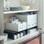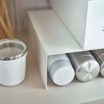 食器棚や戸棚下、パントリーなどでマグボトルやフリーザーバッグのボックスなどを収納するのにピッタリなラックです。