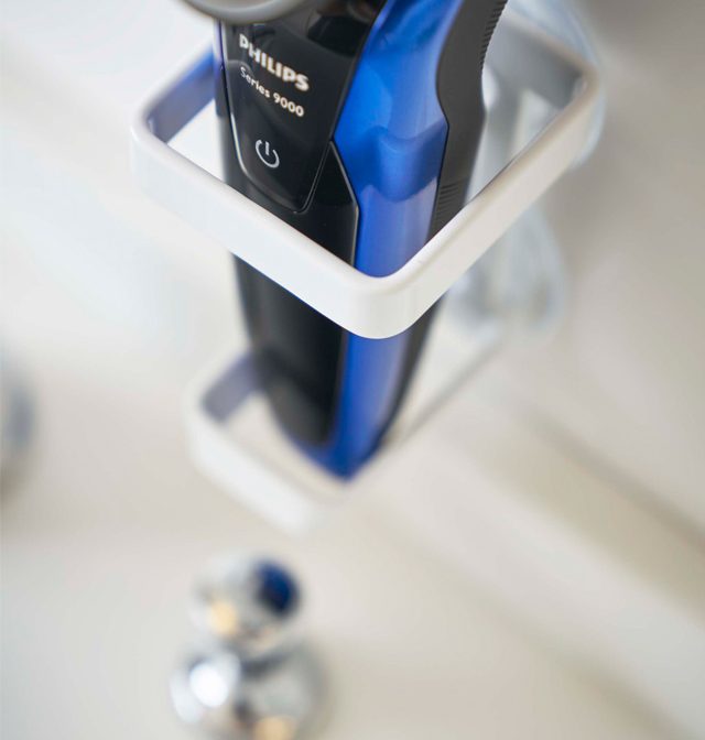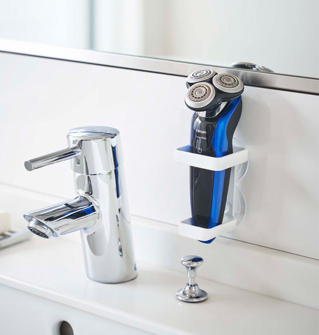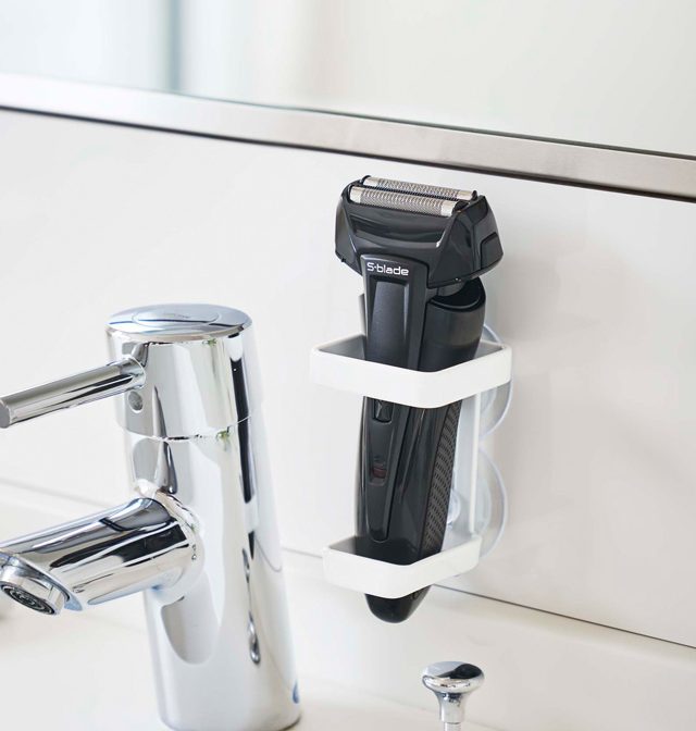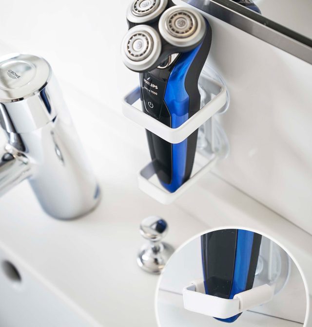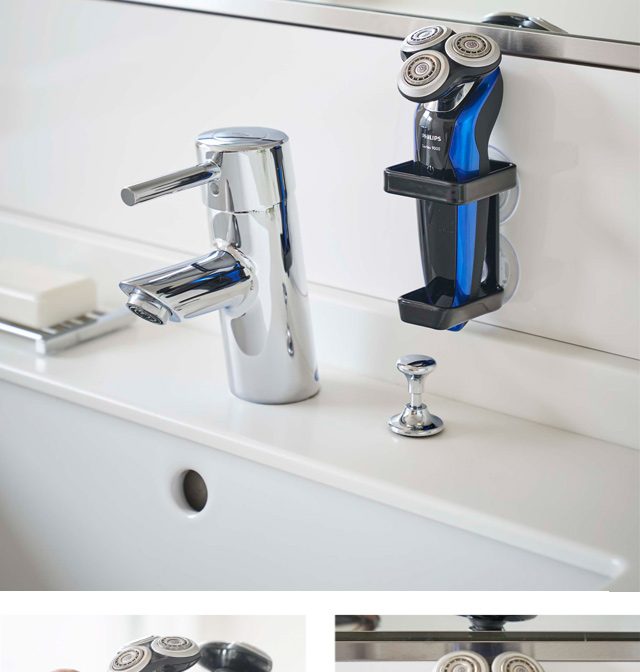 洗面所壁面に吸盤で好きな位置に設置できる電動シェーバーホルダー