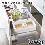 【tower】密閉 シンク下米びつ 5kg 計量カップ付 3377 3378 \ 対象同梱で送料込み /【タワー 米びつ 米櫃 お米 保存 保存容器 キッチン キッチン収納 計量 計量カップ 山崎実業】