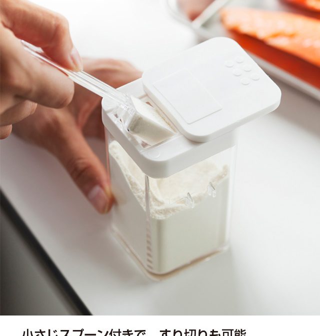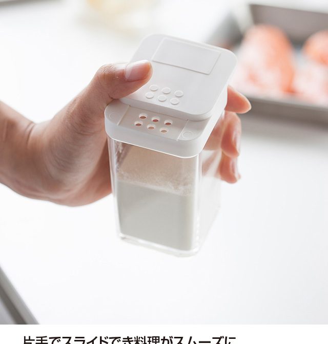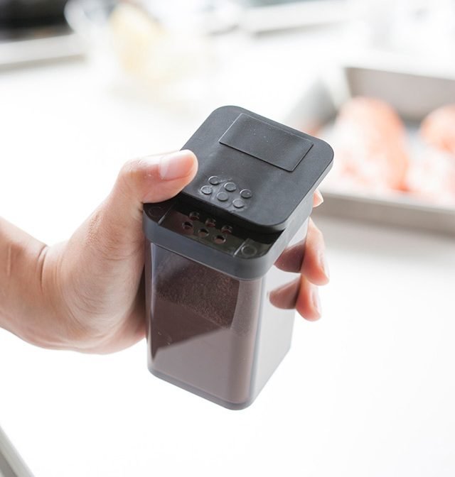 詰め替え用のさらさらタイプの小麦粉や塩コショウ・スパイス等をふり掛けられます。