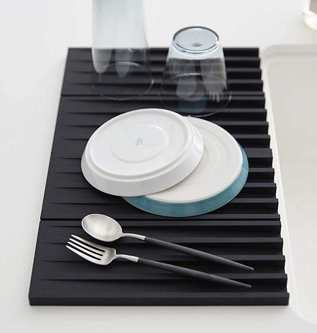 平らな面で食器を支えながら、切った水をそのままシンクに流せる水切りトレー。