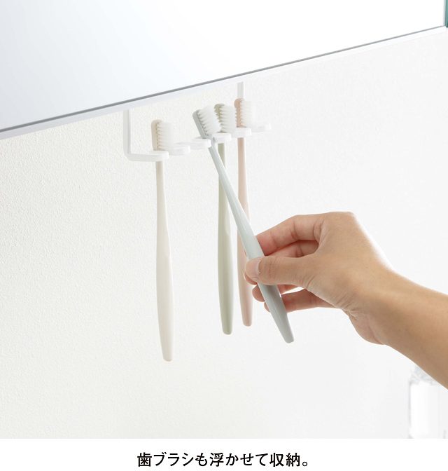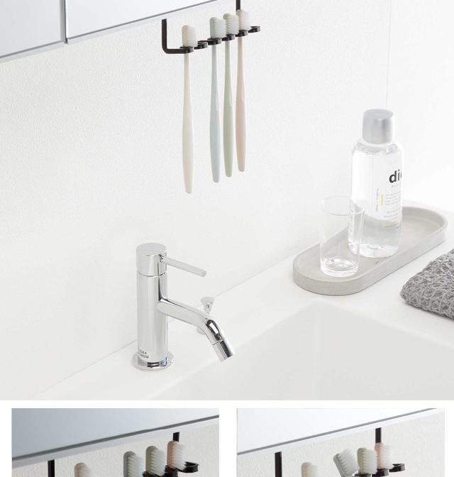 洗面所の吊り戸棚に浮かせて取り付けられる歯ブラシホルダー!