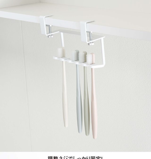 洗面台に浮かせてスッキリ整頓! シェーバーの収納にも便利! 電動歯ブラシの先端の収納にも! 調整ネジでしっかり固定!