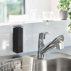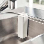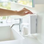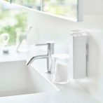 フィルムフックで光沢のある壁面に浮かせて収納できるディスペンサー。
