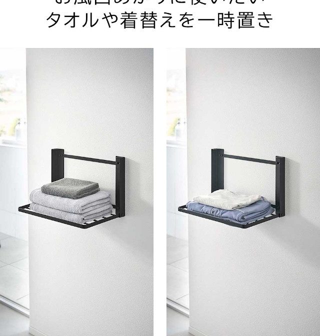 入浴後の着替えやバスタオルなどを一時置きできる便利な折り畳みラック!