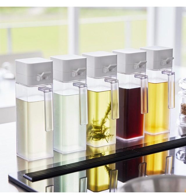 様々な液体調味料を入れて便利に使える、シンプルでスタイリッシュな調味料ボトルです。