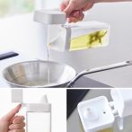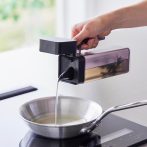 使用時の動作もスムーズでラクラク!取っ手を持ち、蓋に付いた開閉つまみを親指で押すだけで蓋が開き、 そのままボトルを傾ければ調味料が流れ出てきます。