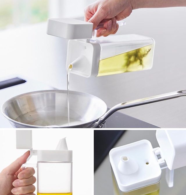 デザイン性と機能性を両立!親指だけで簡単に開閉できる調味料ボトル。液だれしにくいノズルで使用感も抜群!オイルやビネガーなどの液体調味料を手近にお洒落に置くことができます。