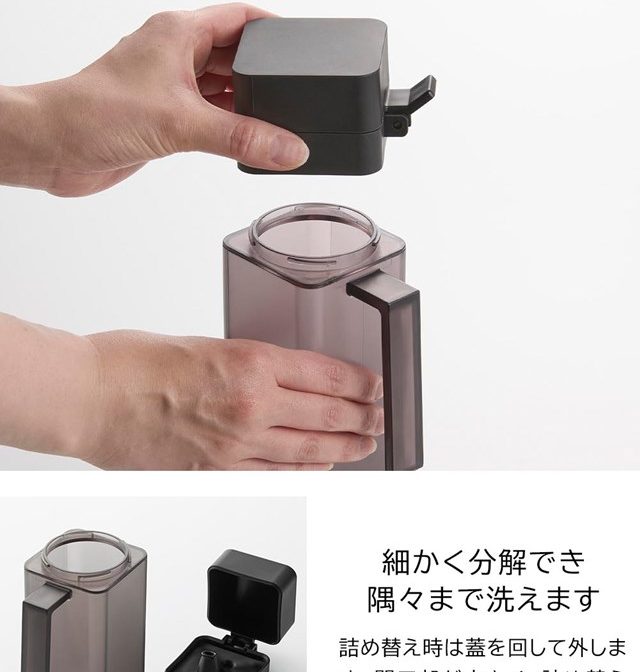 中身の詰め替えは蓋を外して入れるだけ。大きな開口部で補充しやすく、お手入れも簡単です。