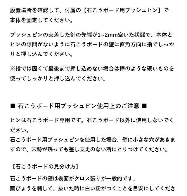 ※石こうボード用プッシュピンは、石こうボード9mm以上に適します。 |