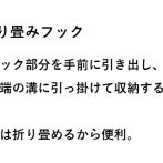 短いフックと折り畳みのフックで用途に合わせて収納可能。