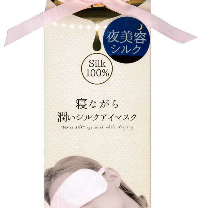 寝ながら潤いシルクケアアイマスク。目元しっとりシルクの潤い。