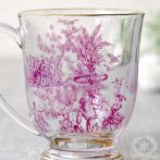 上品な深みのあるボルドーカラーでヨーロッパの人々の生活をプリントしたトワルドジュイシリーズのガラスのマグカップ。