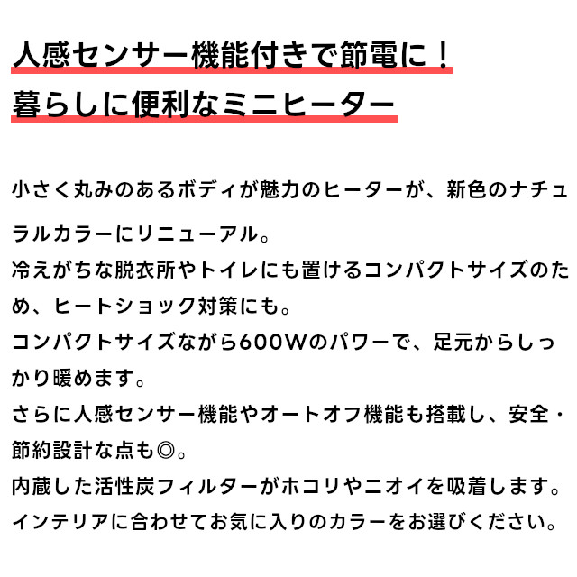 小さく丸みのあるボディが魅力のヒーターが、新色のナチュラルカラーにリニューアル。