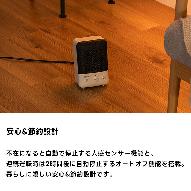 人感センサー機能付きで節電に!暮らしに便利なミニヒーター