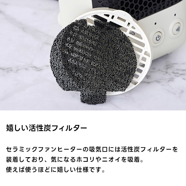 内蔵した活性炭フィルターがホコリやニオイを吸着します。