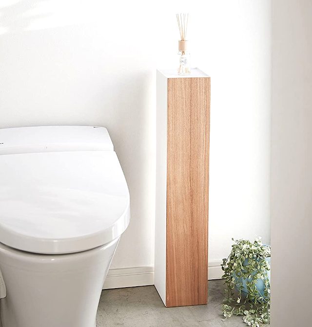 美しい木目でインテリア性のあるスタイリッシュなデザインのスリムトイレラック。