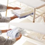 棚付きなのでアイロン小物や、アイロンをかける衣類の一時置きにも便利。