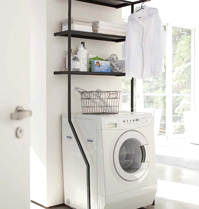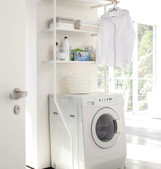 洗濯機の上のスペースを有効活用できちゃう、壁面に立て掛けるだけのランドリーシェルフ。