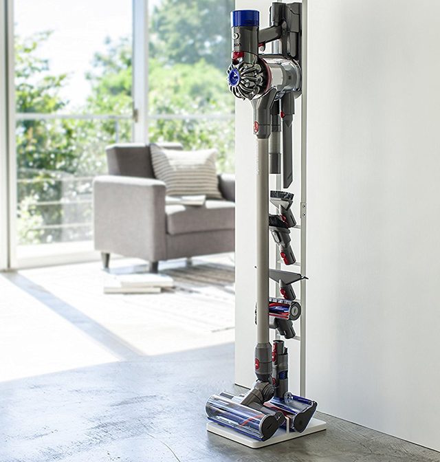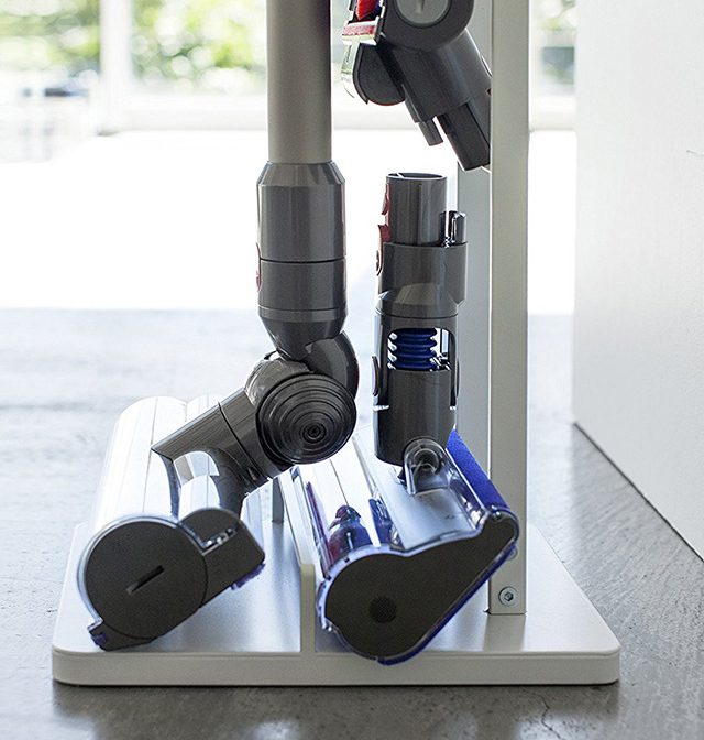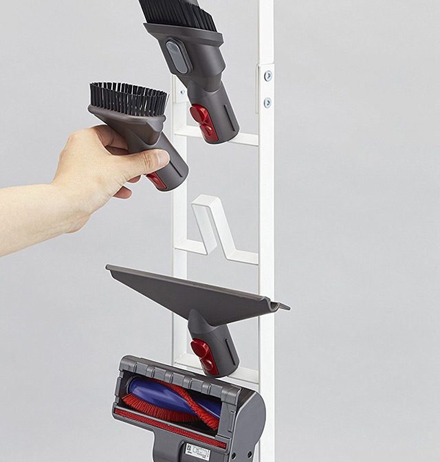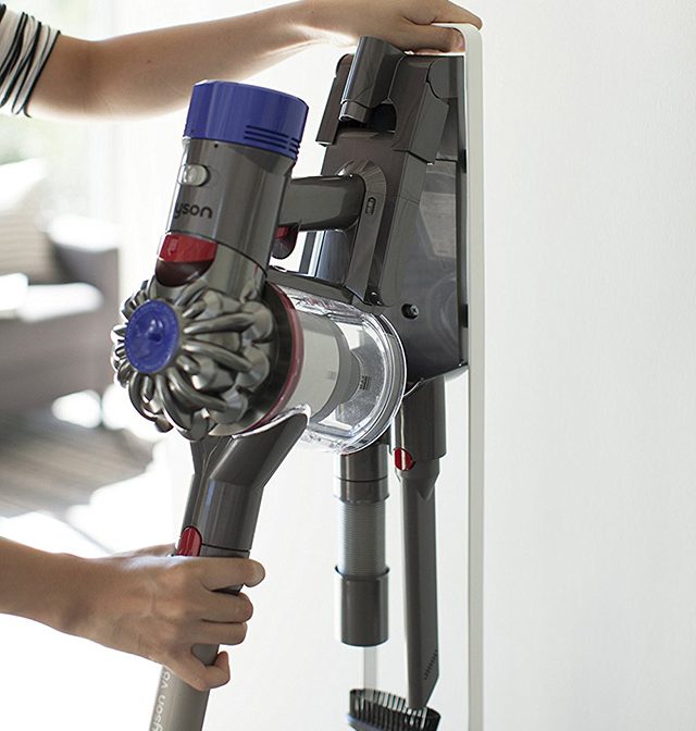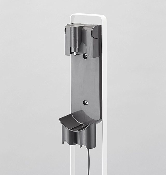 壁に穴を開けずにコードレスクリーナーをスリムに収納できる便利なクリーナースタンド。