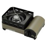 風に強い風防機能付きカセットコンロ。風に強く安定した火力で野外料理が楽しめます。