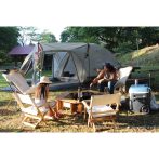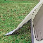 テント前面にはメッシュ付リビングを装備し、サイド面に雨水を逃がせるフラップを装備しています。