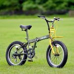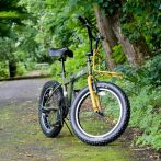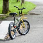 極太ブロックタイヤ(20×2.80 幅約70mm)を履いた、圧倒的な存在感のちょっとトガった折りたたみ自転車です。