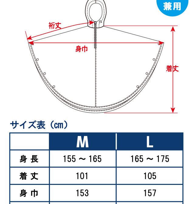 | サイズ | ■男女兼用 Mサイズ: 着丈 102cm、身長155cm~165cm、重量 約195g(本体のみ) Lサイズ: 着丈 106cm、身長165cm~175cm、重量 約220g(本体のみ) |