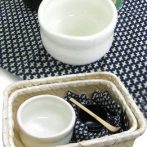 抹茶の道具を、持ち運びに便利な竹かごのケースに収めました。