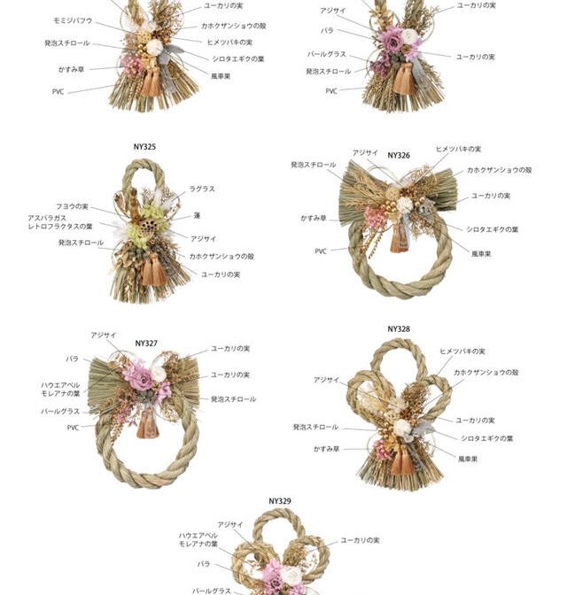 色とりどりの花やパーツが新しい年の始まりを華やかに彩ります。