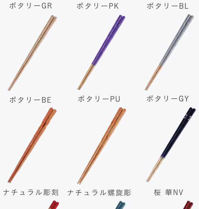 | 素材 | 【ポタリー】_材質:メイプル材(アクリルウレタン塗装・箸先蜜蝋コーティング)加工:彫り、陶器風ザラ質感 【ナチュラル彫刻・螺旋】_材質:松(アクリルウレタン塗装・箸先蜜蝋コーティング)、加工:太め、木の風合い、彫刻 【桜・ねこ・ふくろう・うさぎ・花火】_材質:メイプル材(アクリルウレタン塗装・箸先蜜蝋コーティング)、加工:透かし塗、箔模様 |