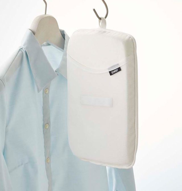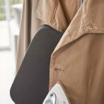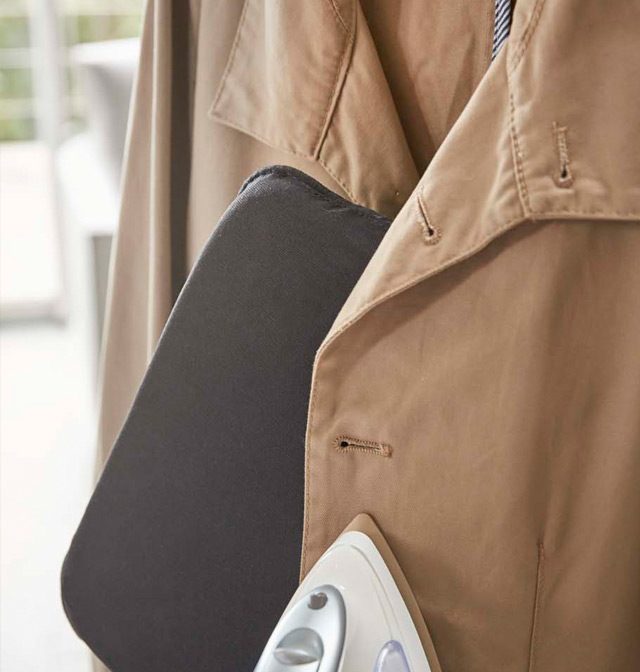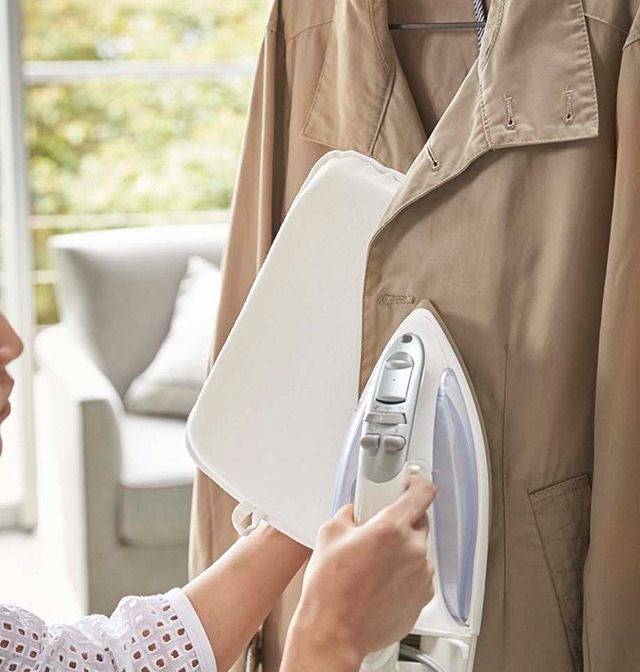 ハンガーに掛けた状態で、アイロン掛けできる。スチーム対応のアイロンミトン。