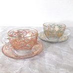 アラベスクグラスカップ&ソーサー 800051 800052 ピンク ミント【ハルモニア ティーカップ アンティーク セット アラベスク 硝子 アフタヌーンティー ヌン活 バレンタイン ホワイトデー 母の日 父の日 敬老の日 クリスマス xmas】