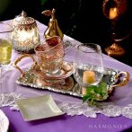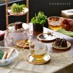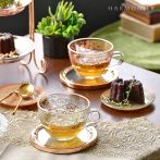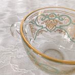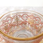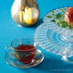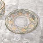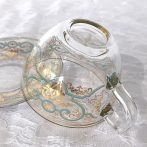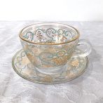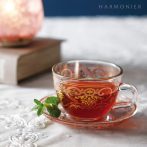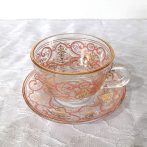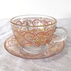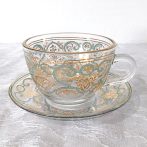 アラベスク模様がプリントされたエキゾチックでおしゃれなガラスティーカップ&ソーサーセット。