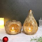 レース柄のメタルでできたエキゾチックなリンゴのLEDキャンドル用ランタン。