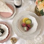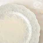 イタリアブランド「ラ・セラミカ」のレース模様のレリーフが美しいクリームカラーの28cmプレート。