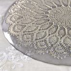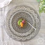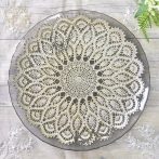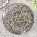 ブラックのガラスにシルバーのレース柄が美しく映えるトルコ製のガラスプレート28cm。