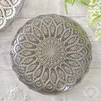 ブラックのガラスにシルバーのレース柄が美しく映えるトルコ製のガラスプレート21cm。
