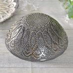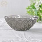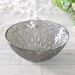 ブラックのガラスにシルバーのレース柄が美しく映えるトルコ製のガラスボウル。