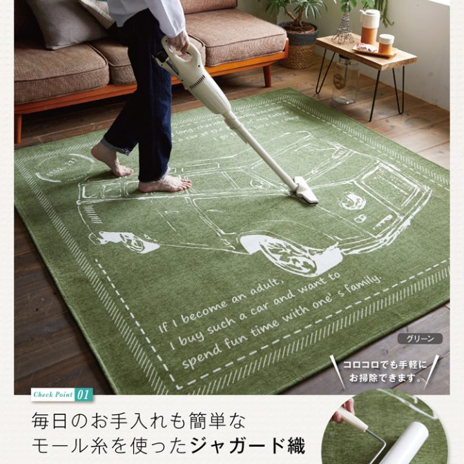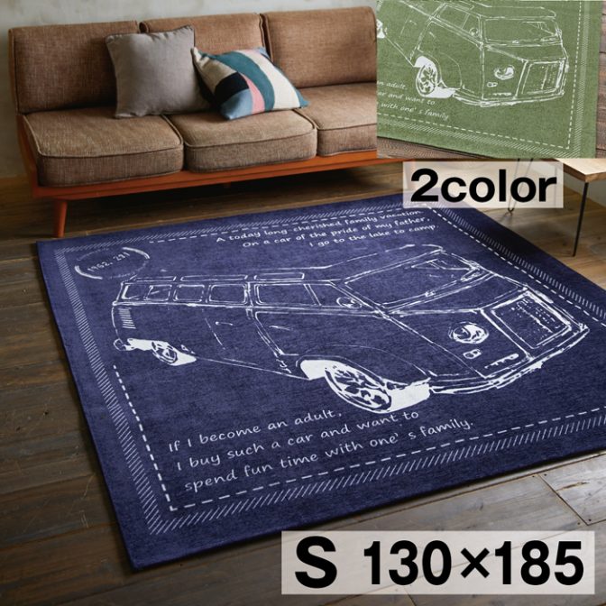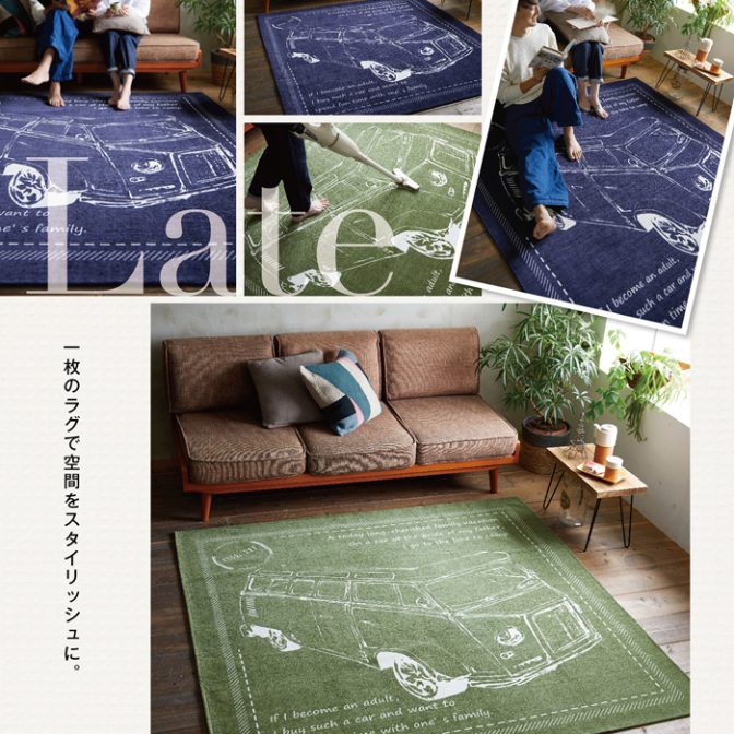 オールシーズン使えて洗える。レトロワゴンデザインラグ。