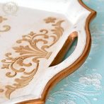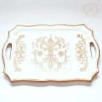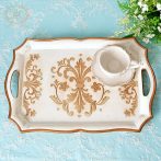 3~4人分のティーセットが乗せられるサイズで、食卓が華やかになるエレガントなトレイです。