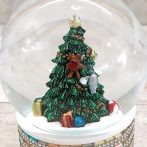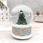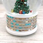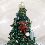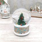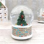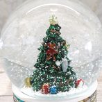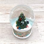 煌びやかなベースのクリスマスツリーのオルゴール付きスノードーム。