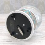 ネジを回すと「サンタが街にやってくる」が流れ、逆さまにすると虹色のラメが入った白い粉雪が舞い落ちます。
