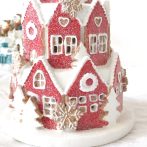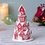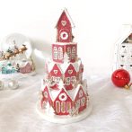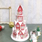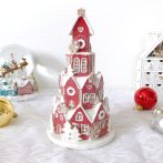 クリスマスの定番お菓子ジンジャーブレッドで作ったようなかわいい赤色の家々が並ぶ街のオブジェ。