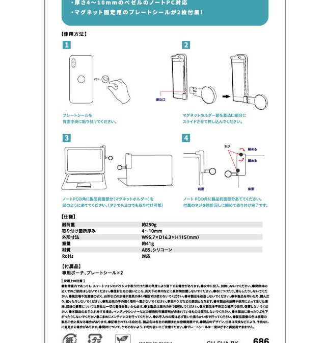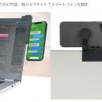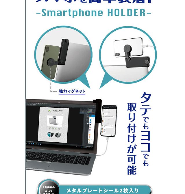 ノートPCのベゼルに取り付けられるスマホホルダー