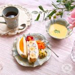 アンティーク調に色むらを付けた淡いブルーがやさしい雰囲気のお皿です。
