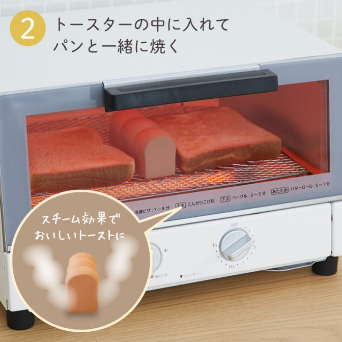 水に浸してからトースターに入れ、パンと一緒に焼くだけ。