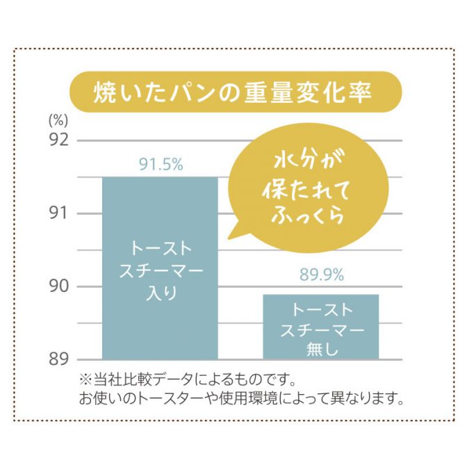 庫内にスチームが出て、パン内部の水分を保ちつつ、外はサクッ、中はふわっと美味しく焼き上げます。