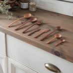 サオの木というインドネシアの果物の木でできていて、木目が大変美しく、ベージュ~赤のグラデーションがあります。
